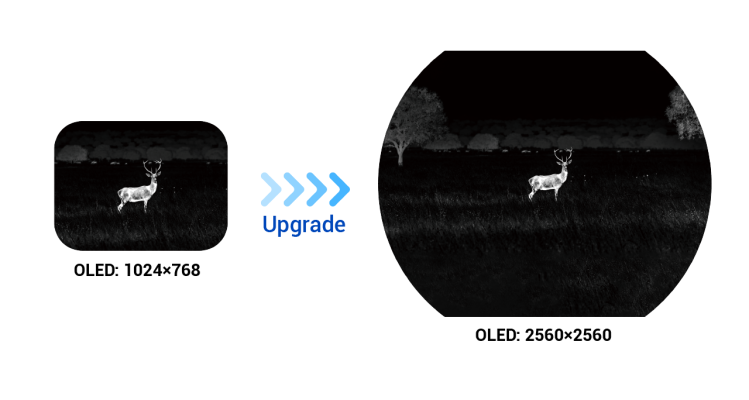 Termovizní zaměřovač Night Arrow MAX je vybaven prémiovým OLED displejem s vysokým rozlišením 2560 × 2560 px, který poskytuje mimořádně ostrý a plynulý obraz. Větší zobrazovací plocha snižuje únavu očí při delším používání a zvyšuje přesnost střelby díky lepší viditelnosti detailů a bodu dopadu.